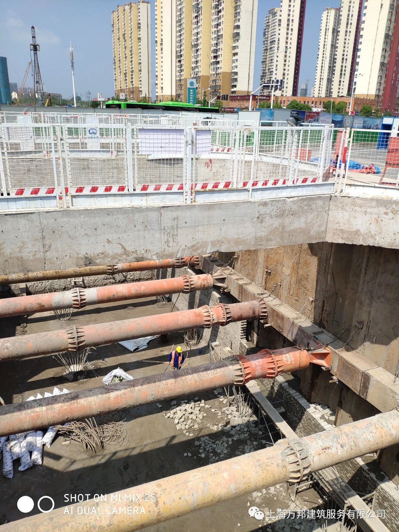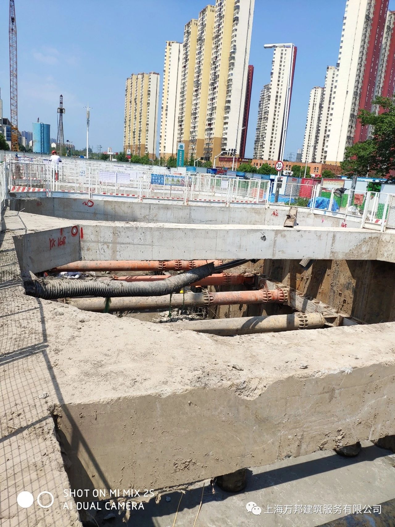 (中铁四局)南京地鉄2号线西延05标螺油区间采用HUW工法,基坑开挖深度8米至14米;该基坑分三段(E、F、G)施工,充分利用HUW工法的“三通法”,马路半幅施工,确保车辆正常通行;该基坑F段已完工,恢复车辆通行;G段正在砖砌法找平、主体结构施工中;E段24U型板桩、24米H型钢接桩打设中..........2020年6月2日